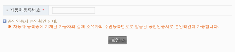 5. 본인 확인이 끝나면 자동차 등록번호를 입력하는 칸이 나오는데 여기서 내 차량 번호를 정확하게 입력해줘야 해요. 번호를 확인하고 입력한 뒤 확인을 누르면 다음 단계로 넘어가게 돼요.