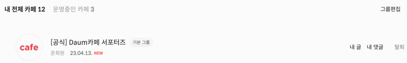 6. 다음과 같은 방식으로 네이버에서도 내가 가입한 카페를 관리할 수 있습니다. 카페에 접속하거나 탈퇴하는 일도 이 화면에서 간단하게 처리할 수 있습니다.
