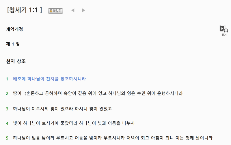 4. 검색한 성경 본문은 책갈피 기능과 듣기 기능도 함께 사용할 수 있어요. 텍스트도 깔끔하게 정리돼 있어 읽기 편해요.