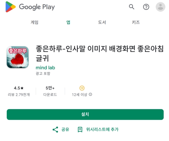 1. 좋은하루 앱은 다양한 인사말 이미지와 따뜻한 글귀를 쉽게 찾을 수 있는 모바일 서비스입니다. 설치를 눌러서 앱을 다운로드 받아 이용 하실 수 있습니다.