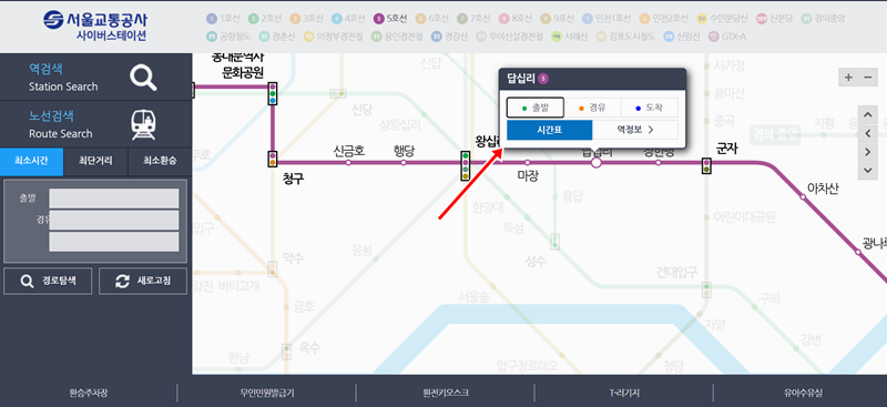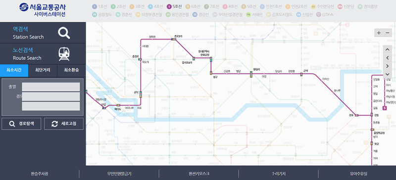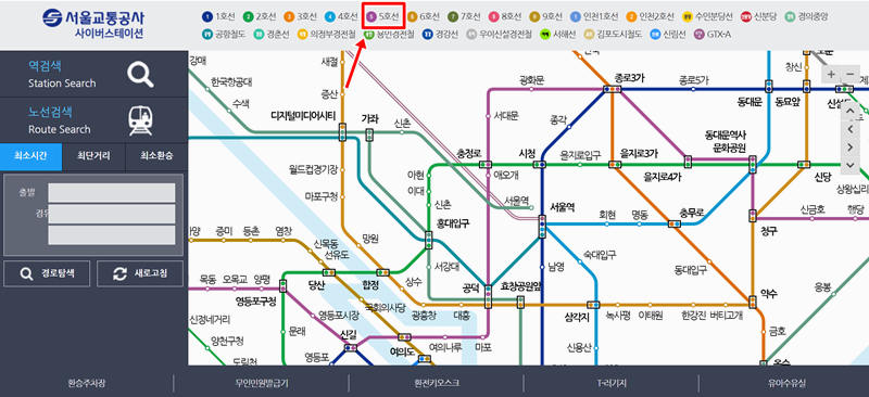 전철 5호선 노선도 시간표 조회