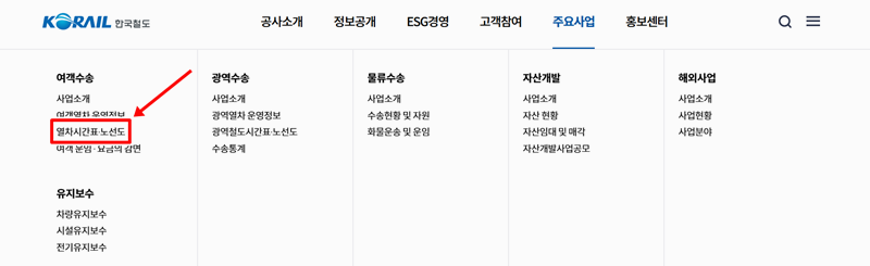 2. 코레일 홈페이지의 '주요사업' 메뉴에서 '여객수송' 항목으로 들어간 후 '열차시간표·노선도'를 찾아주세요. 이곳에서 KTX를 포함한 모든 열차의 운행 정보와 전체 노선 현황을 확인할 수 있어 여행 계획의 첫걸음이 됩니다.