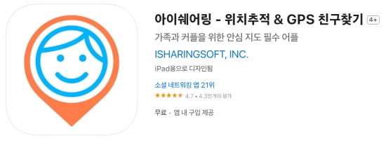 1. 먼저 '아이쉐어링'이라는 위치 추적 및 GPS 친구 찾기 앱을 설치하는 과정이 필요해요. 이 앱은 가족이나 연인을 위한 안심 지도 필수 앱으로 소개되고 있으며, 앱 내에서 구매 항목이 있을 수 있습니다. 많은 사람들이 사용하며 긍정적인 평가를 받고 있는 것을 확인할 수 있어요.
