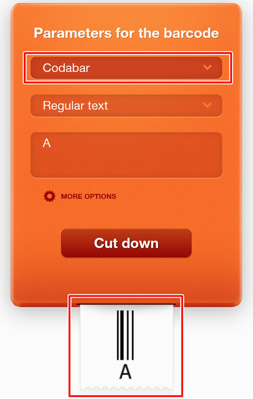 4. 상품 바코드 외에도 도서관 등에서 사용하는 'Codabar'와 같은 다른 형식의 바코드도 만들 수 있습니다. 종류를 선택하고 'A'와 같이 원하는 문자를 입력하면, 해당 문자가 포함된 바코드가 실시간으로 아래에 나타나 바로 확인할 수 있어 편리합니다.