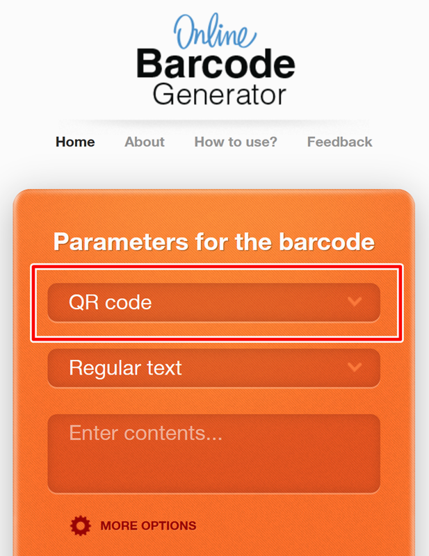 5. 막대 모양의 바코드뿐만 아니라 정사각형 모양의 QR 코드 생성도 가능해요. 첫 번째 목록에서 'QR code'를 선택하면 됩니다. 웹사이트 주소를 연결하거나, 와이파이 정보를 담는 등 더 많은 양의 정보를 담고 싶을 때 QR 코드를 활용하면 좋습니다.