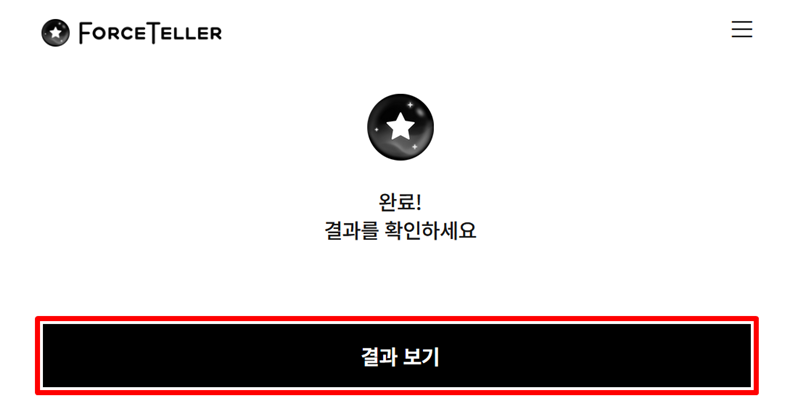 3. 카드를 모두 섞고 나면 '완료! 결과를 확인하세요'라는 메시지가 나타납니다. 이제 당신의 운세가 담긴 카드를 확인할 시간입니다. 화면에 보이는 '결과 보기'를 선택하여 어떤 이야기가 당신을 기다리고 있는지 확인해 보세요.