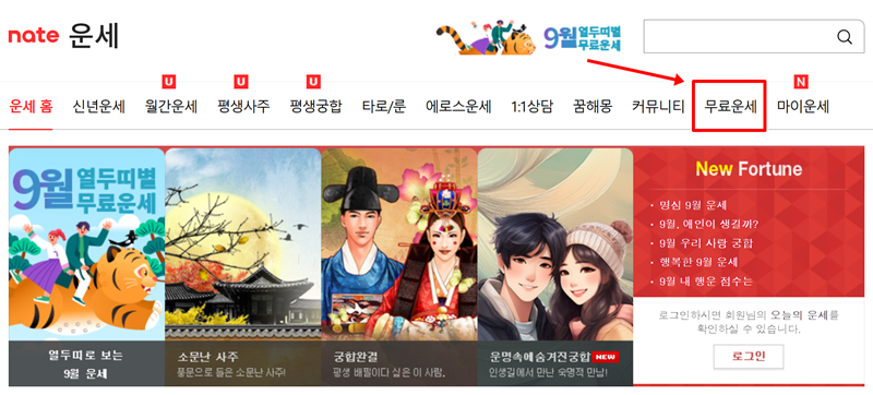 7. 다른 경로로도 무료 운세를 즐길 수 있습니다. 예를 들어 네이트 운세와 같은 포털 사이트에서는 상단 메뉴 중 '무료운세'를 통해 다양한 종류의 운세 콘텐츠를 만나볼 수 있습니다. 여러 가지 콘텐츠 중에서 원하는 것을 골라보세요.