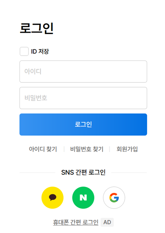 6. 문서를 내려받기 위해서는 로그인이 필요합니다. 기존에 계정이 있다면 아이디와 비밀번호를 입력하고, 없다면 간단한 회원가입 절차를 거치거나 아래에 있는 SNS 계정을 연동하여 간편하게 로그인할 수 있습니다.
