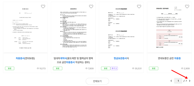 3. 검색을 마치면 차용증서, 임대차계약서, 현금보관증서식 등 여러 종류의 결과가 나타납니다. 각 문서의 미리보기를 통해 내용을 간략히 확인하고, 내가 찾는 목적에 가장 적합한 것을 고르면 됩니다. 페이지를 넘기며 더 많은 서식을 둘러볼 수도 있습니다.