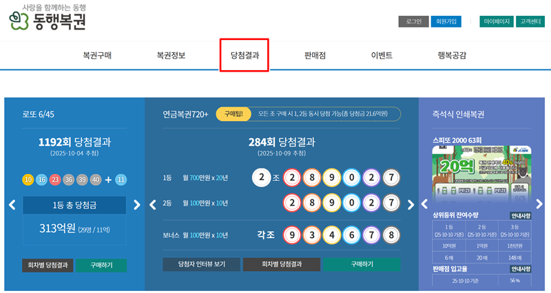 1. 홈페이지 상단에 여러 메뉴가 보이실 거예요. 그중에서 '당첨결과'라는 항목을 찾아보세요. 이곳에서 로또를 포함한 다양한 복권의 지난 회차 결과들을 모두 확인할 수 있답니다. 모든 정보가 모여있는 곳이니 가장 먼저 이곳으로 들어가시면 돼요.