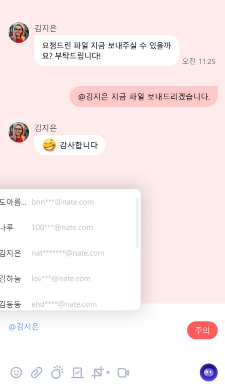 6. 텍스트만으로는 감정을 표현하기 아쉬울 때가 있죠. 네이트온은 다양한 이모티콘과 움직이는 액티콘을 지원하여 대화를 더욱 생동감 있고 재미있게 만들어 줍니다. 상황에 맞는 이모티콘으로 분위기를 한층 더 유쾌하게 바꿔보세요.