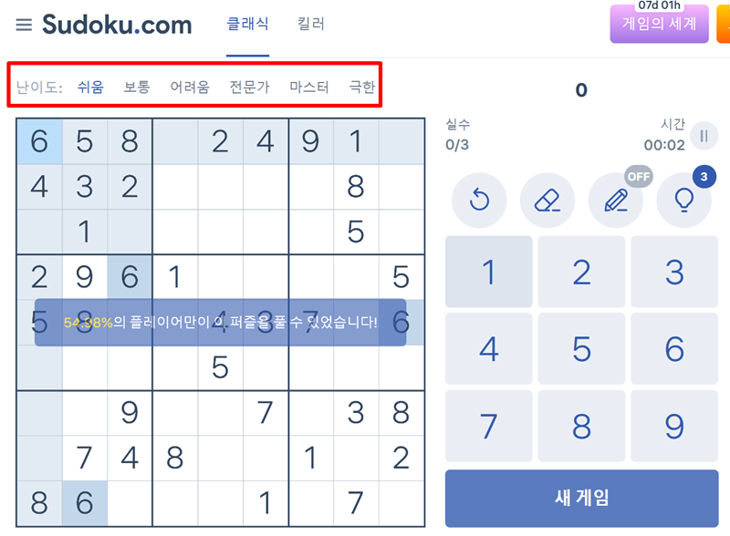 [스도쿠닷컴 - https://sudoku.com/ko]