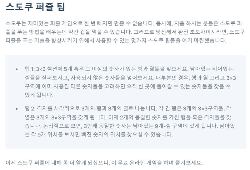머리를 쓰는 즐거움이 필요할 때, 많은 분들이 숫자 퍼즐을 찾곤 합니다. 그중에서도 전 세계적으로 꾸준히 사랑받는 게임이 있죠. 복잡한 계산 없이 오직 논리만으로 빈칸을 채워나가다 보면 시간 가는 줄 모를 정도로 집중하게 됩니다. 특별한 준비물 없이도 언제 어디서든 가볍게 즐길 수 있다는 점이 큰 매력으로 다가옵니다. 이 게임을 즐기는 방법에 대해 차근차근 알아보겠습니다.