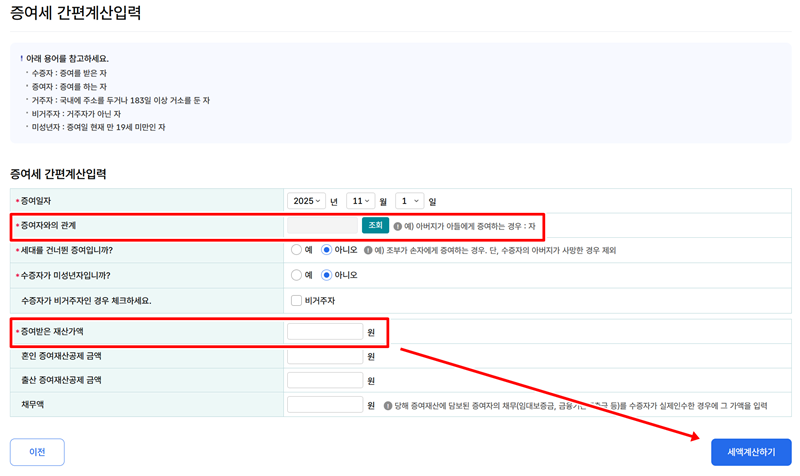 현금 증여세 자동 계산기