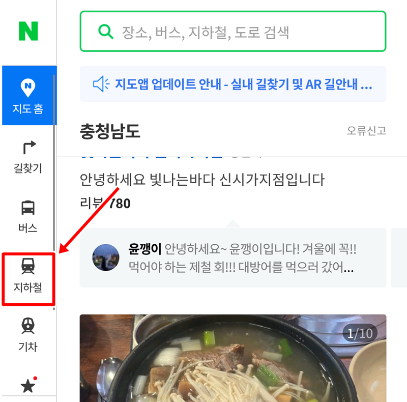 1. 네이버 지도 서비스에 들어간 후, 왼쪽 메뉴 모음에서 '지하철' 항목을 선택합니다. 이곳에서는 전체 수도권 지하철 노선도를 확인하고, 경로 검색이나 시간표 조회 등 지하철 이용에 필요한 다양한 정보를 얻을 수 있습니다. 원하는 노선도를 바로 확인할 수 있어 편리합니다.
