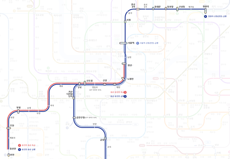 인천 급행 노선도 급행 정차역