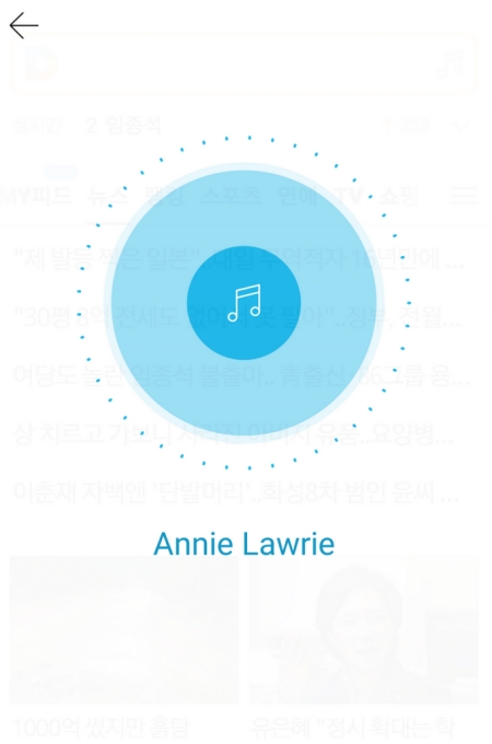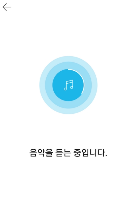 4. 이제 스마트폰이 주변의 소리를 듣기 시작합니다. '음악을 듣는 중입니다'라는 안내 문구와 함께 동그란 아이콘이 움직이며 곡을 분석하고 있으니, 잠시만 기다려주면 결과를 알려줄 거예요.