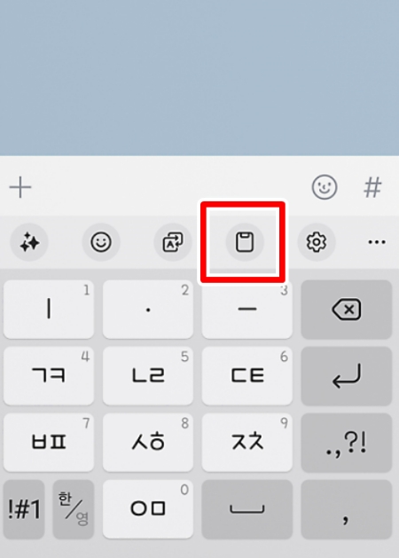 1. 메시지나 메모장 등 텍스트를 입력할 수 있는 창을 띄우면 키보드가 나타납니다. 이때 키보드 상단 툴바를 자세히 보시면 여러 아이콘이 나열되어 있는데 그중에서 서류철 모양처럼 생긴 아이콘을 찾아주세요. 이것이 바로 우리가 찾는 저장소로 들어가는 입구입니다. 이 아이콘을 선택하면 그동안 복사해두었던 텍스트나 이미지 목록을 한눈에 확인할 수 있습니다.