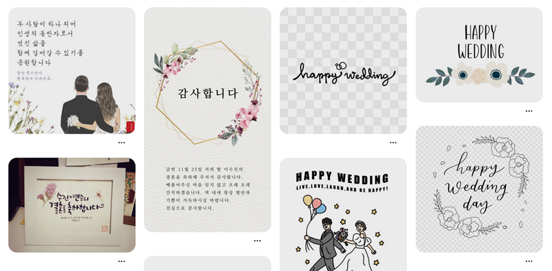4. 검색 결과로 다양한 스타일의 결혼 축하 문구 이미지들이 나타나며, 이 중에서 마음에 드는 문구를 골라볼 수 있습니다.