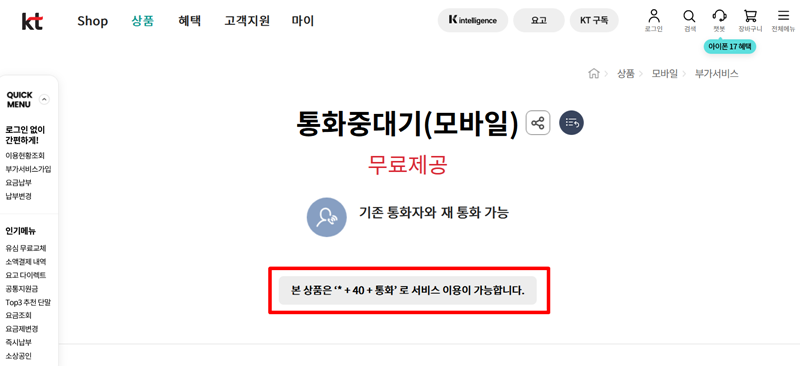 kt 통화중대기 설정법