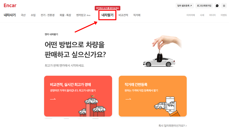 차량 구매뿐만 아니라, 내 차를 판매할 때의 시세가 궁금할 수도 있겠죠. 그럴 땐 '내차팔기' 메뉴를 이용해 보세요. 이곳에서는 내 차의 가치를 평가받고, 여러 전문가들의 비교 견적을 통해 가장 좋은 조건으로 판매할 기회를 잡을 수 있습니다. 내 차의 현재 가치를 가장 정확하게 알 수 있는 방법 중 하나예요.