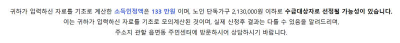 모든 정보를 입력하고 '결과보기'를 누르면 모의계산 결과를 바로 확인할 수 있습니다. 입력된 자료를 바탕으로 계산된 소득인정액이 얼마인지, 그리고 그 금액이 수급자격 선정기준액과 비교하여 대상이 될 가능성이 있는지 알려줍니다. 다만, 이 결과는 어디까지나 모의계산일 뿐이므로, 실제 신청 결과와는 다를 수 있다는 점을 유념하고 참고용으로만 활용해야 합니다.