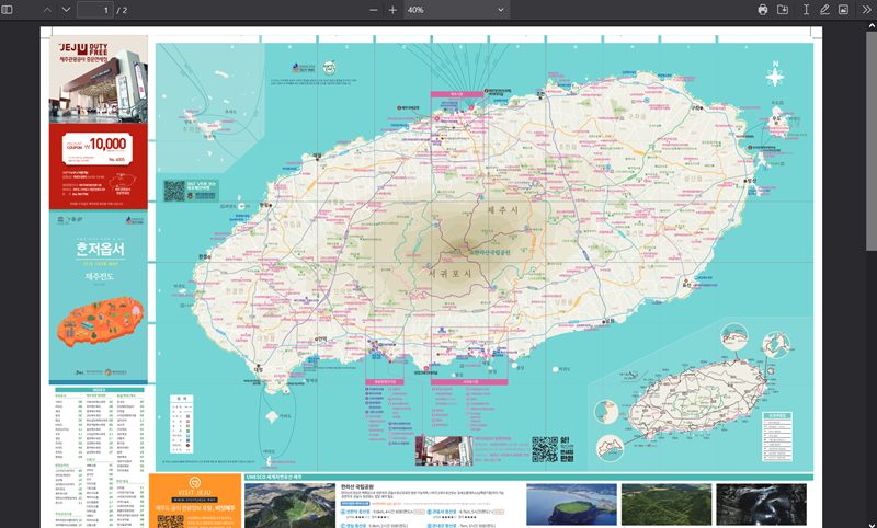 지도를 열면 제주도 전역의 모습이 한눈에 들어오는 것을 확인할 수 있어요. 주요 관광지는 물론, 해안도로와 오름, 한라산의 위치까지 상세하게 표시되어 있어 전체적인 여행 경로를 구상하는 데 큰 도움이 됩니다. 처음 방문하는 분들도 이 지도 하나면 제주도의 지리를 쉽게 파악할 수 있을 거예요.