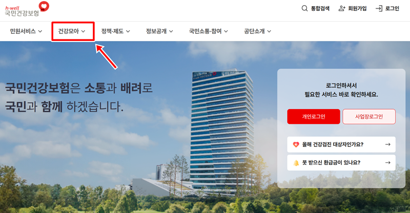검진 기관을 찾으려면 먼저 어디로 들어가야 할지 헷갈리실 수 있는데요, 우선 nhis.or.kr에 접속해 주세요. 홈페이지에 들어서면 상단에 여러 메뉴가 보이는데, 그중에서 '건강모아'라는 항목을 찾아서 눌러주시면 됩니다. 이곳에서 건강과 관련된 다양한 정보를 확인할 수 있으니 기억해두시면 좋아요.
