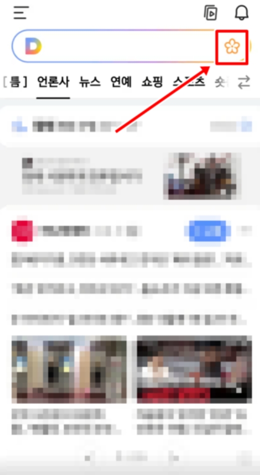이런 편리한 기능이 있는지도 모르고 지나치는 분들이 많더라고요. 우선 'Daum' 앱을 실행한 뒤, 메인 화면 상단의 검색창을 한번 봐주세요. 검색창 오른쪽 끝을 보면 작고 귀여운 꽃 모양의 아이콘이 하나 보일 거예요. 따로 메뉴를 찾아 헤맬 필요 없이, 이 아이콘이 바로 꽃 이름을 찾아주는 기능으로 들어가는 입구랍니다.