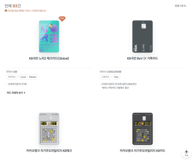 필터를 거치고 나니 결과가 훨씬 보기 편해졌어요. 제 조건에 맞는 카드들만 쭉 나오는데, 생각지도 못했던 체크카드 중에서도 라운지 혜택이 있는 것들이 있더라고요. 각 카드의 '카드 자세히 보기'를 통해 전월 실적 같은 세부적인 이용 조건도 꼼꼼하게 확인할 수 있으니, 발급받기 전에 꼭 한번 살펴보는 게 좋아요.