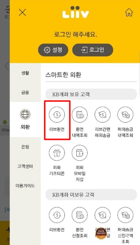 이제 실제 은행 앱에서는 어떻게 하는지 보여드릴게요. KB국민은행의 '리브' 앱을 예로 들어볼게요. 앱을 실행한 뒤 메인 화면에서 '외환' 메뉴를 선택하면 '스마트한 외환'이라는 화면이 나와요. 여기서 계좌 보유 고객이라면 위쪽에 있는 '리브환전' 아이콘을 선택해서 바로 신청 절차를 진행할 수 있답니다.