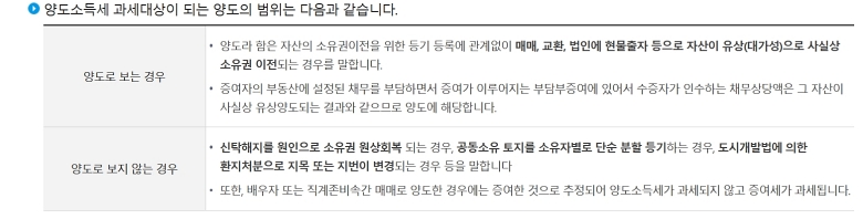 세법에서는 '양도'로 보는 경우와 그렇지 않은 경우를 구분하고 있어요. 예를 들어, 돈을 받고 소유권을 넘기는 매매는 당연히 양도에 해당해요. 하지만 신탁을 해지해서 소유권이 원래대로 돌아오거나, 배우자에게 증여하는 것으로 추정되는 경우는 양도로 보지 않아서 양도소득세가 아닌 증여세가 과세될 수 있어요. 조금 복잡하지만 알아두면 도움이 되는 부분이에요.