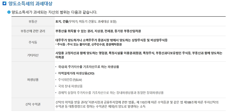 양도소득세가 부과되는 대상은 생각보다 다양해요. 우리가 흔히 아는 부동산(토지, 건물)은 물론이고, 부동산을 취득할 수 있는 권리나 주식, 파생상품 등도 포함돼요. 내가 팔려는 자산이 과세 대상에 해당하는지 궁금하다면 여기서 한번 확인해보는 게 좋아요. 대부분의 경우는 부동산에 해당하겠지만요.