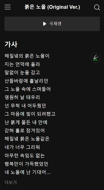 9. 모바일에서는 별도의 플레이어를 설치하지 않아도 곡을 바로 재생할 수 있으며 가사 전체도 편리하게 확인할 수 있어요. 언제 어디서나 간편하게 음악을 감상할 수 있답니다.