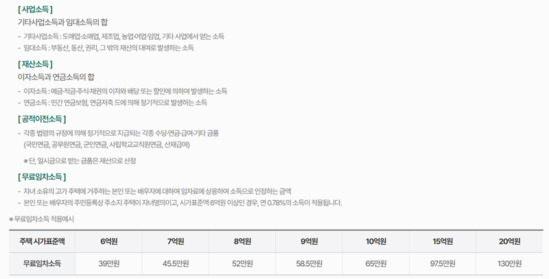 3. 소득인정액에는 여러가지 소득이 있는데 사업, 재산, 공적이전, 무료임차 등이 포함돼요. 사업은 자영업이나 부동산 임대 수익을 의미하며 재산은 예금이자나 연금소득 등이 해당돼요. 공적이전은 국민연금, 공무원연금 등 정기적으로 받는 급여를 말하며 자녀 집에서 거주하는 경우 일정 기준에 따라 무료임차소득으로 반영될 수도 있어요.