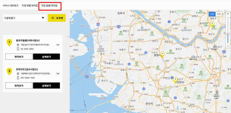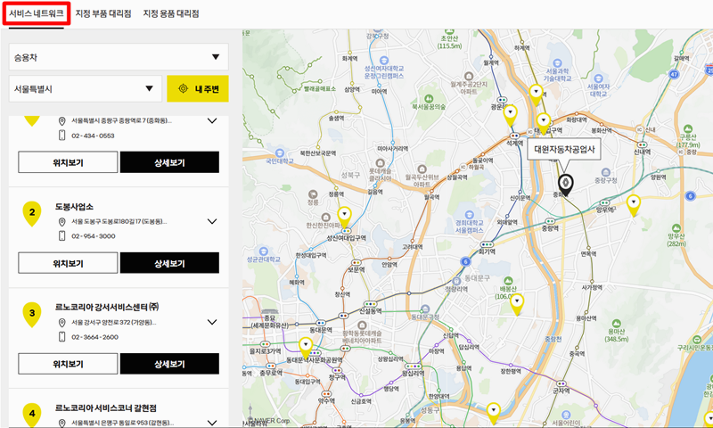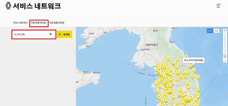 르노삼성자동차 부품대리점 센터 찾기