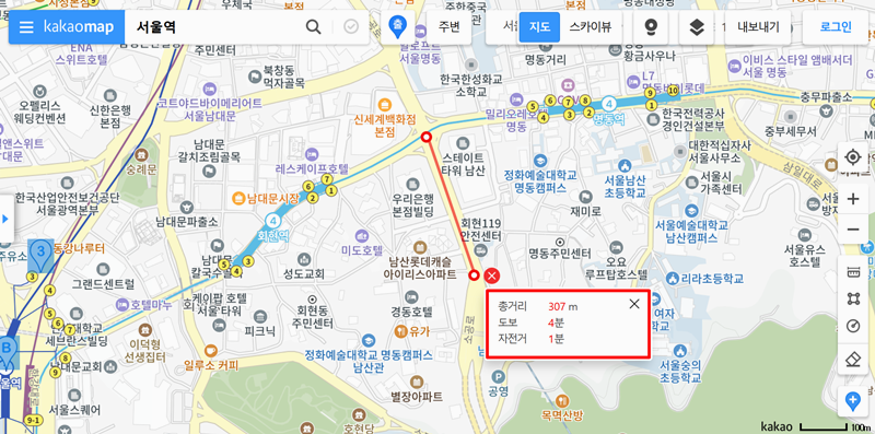 다음지도 직선거리 재기 및 측정