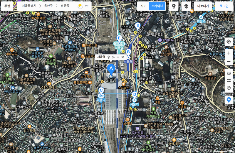 로드뷰와 스카이뷰는 다음 지도에서 정말 유용한 기능이에요. 로드뷰는 실제 길 위를 걷는 것처럼 도로와 주변 환경을 360도로 살펴볼 수 있는 서비스인데요, 건물 외관이나 간판까지 자세히 볼 수 있어 낯선 장소에 갈 때 큰 도움이 돼요. 스카이뷰를 보려면 밑의 카카오맵 사이트를 이용하시면 되는데요, 별도의 다운로드 없이도 바로 사용이 가능하답니다.