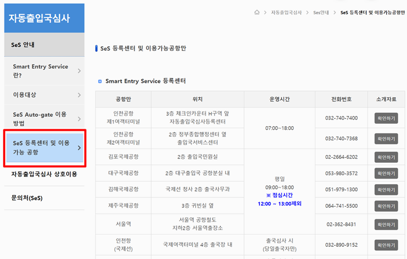 4. 사전등록이 필요한 분들은 SeS 등록센터나 공항만에서 직접 신청할 수 있습니다. 어디에 있는지 확인하고 싶으시다면 등록센터 위치를 안내하는 항목을 참고하시면 됩니다.