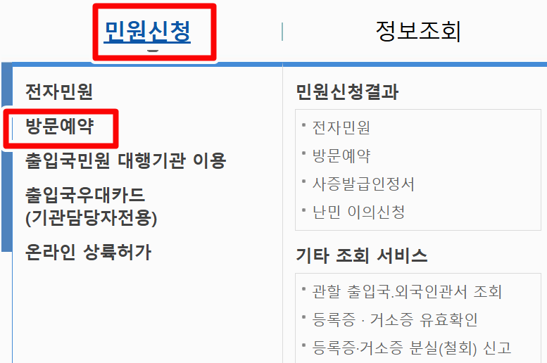 5. 미리 인터넷으로 방문 예약 후 등록하고자 하는 경우 민원신청의 반문예약 신청을 통해서 신청서를 작성하고 예약 할 수 있습니다.
