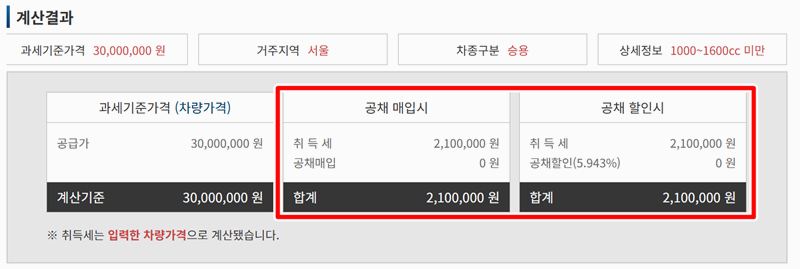 5. 자동차365 계산기를 통해 차량 가격에 맞는 취득세를 쉽게 확인할 수 있습니다. 예를 들어 3,000만 원짜리 차량에 대한 취득세는 210만 원으로 확인됩니다. 공채 매입과 할인이 적용되면 세액이 달라질 수 있습니다.