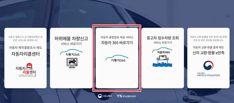 1. 중고차 관련 다양한 정보를 제공하는 웹사이트로 취등록세 계산뿐만 아니라 차량 등록, 이전 절차 등 필요한 여러 가지 서비스를 제공합니다.여기서 가운데의 자동차 365로 이동합니다.