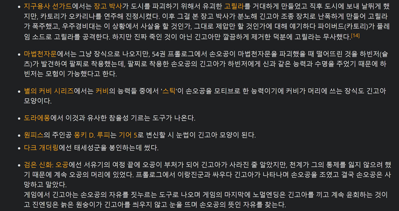 9. 다른 작품에서도 긴고아와 유사한 아이템이 등장합니다. 예를 들어, 날아라 슈퍼보드에서는 헬멧이 긴고아 역할을 하며, 커비 시리즈에서는 손오공을 모티브로 한 능력을 가진 장식이 등장합니다. 긴고아는 다양한 작품에서 제어 장치로 활용됩니다.