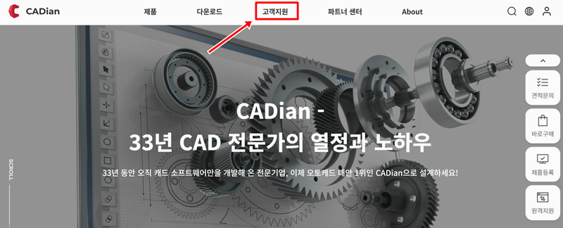 1. 캐디안 공식 홈페이지에 들어가서 상단에 있는 고객지원 메뉴를 눌러보세요. 거기서 dwg뷰어 다운로드 페이지로 이동할 수 있어요. 메뉴 구성이 복잡하지 않아서 누구나 쉽게 찾을 수 있어요.