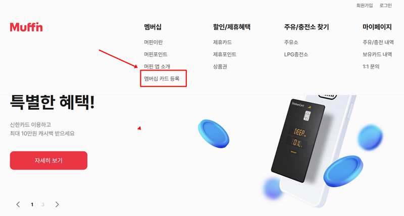 1. SK엔크린 홈페이지(머핀)는 SK주유소와 관련된 다양한 서비스와 혜택을 제공하는 공식 웹사이트입니다. 이곳에서는 SK엔크린 보너스카드 발급과 등록 방법을 포함해 주유소 위치, 이벤트 정보 등 여러 가지 유용한 정보를 확인할 수 있어요. 또한 회원 가입 후 다양한 프로모션과 할인 혜택도 누릴 수 있습니다. 홈페이지 상단 메뉴에서 멤버십 메뉴->멤버십 카드 등록으로 들어갑니다.