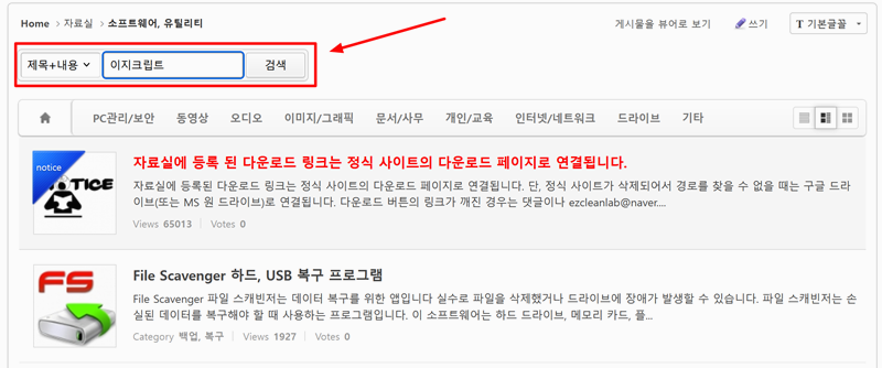 2. 검색 결과에서 이지크립트 다운로드 페이지를 확인 할 수 있습니다. 여기로 이동 해줍니다.